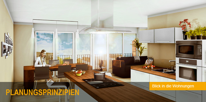 Die modernen und offenen Grundrisse sind zugeschnitten für alle Generationen. Offene Küchen als Mitte und Treffpunkt innerhalb der Wohnungen vergrößern das Raumempfinden und ermöglichen Ihnen eine komfortable Nutzung mit großer Bewegungsfreiheit.